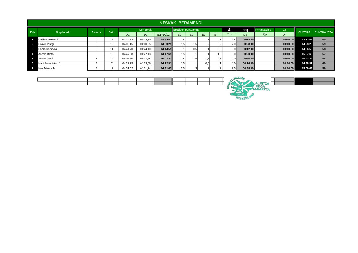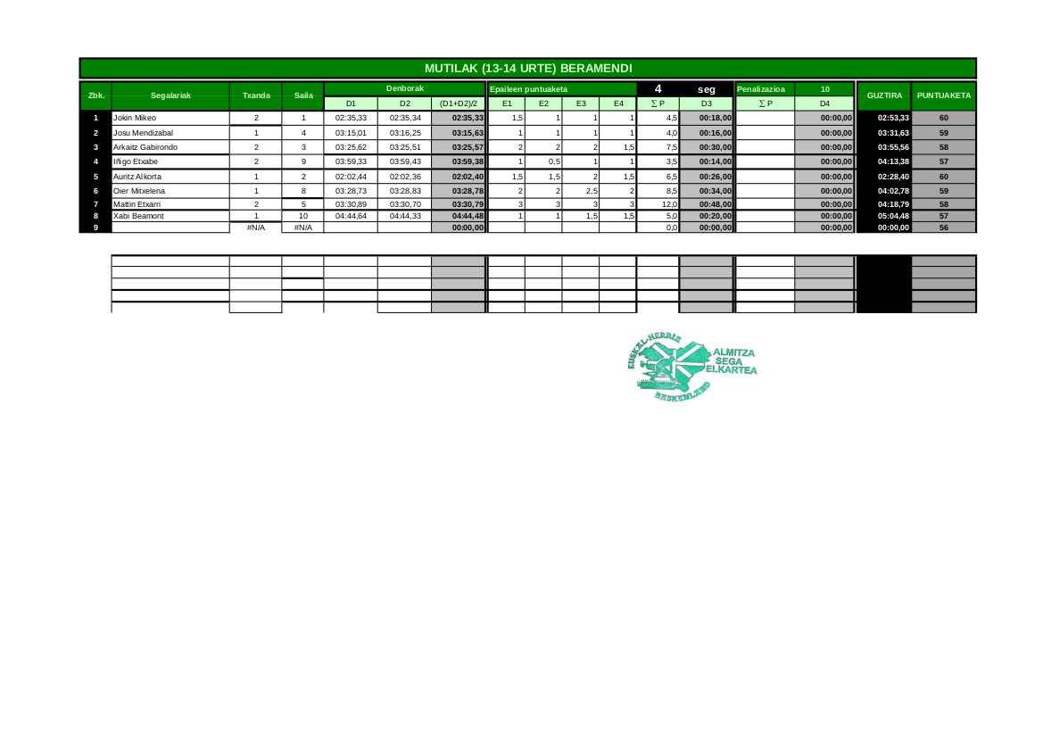 Gaztetxoei dagokienez, mutilek 5×10 m2 -ko saila ebaki behar izan zuten eta honakoak izan ziren taldean gailendu ziren lehenak: