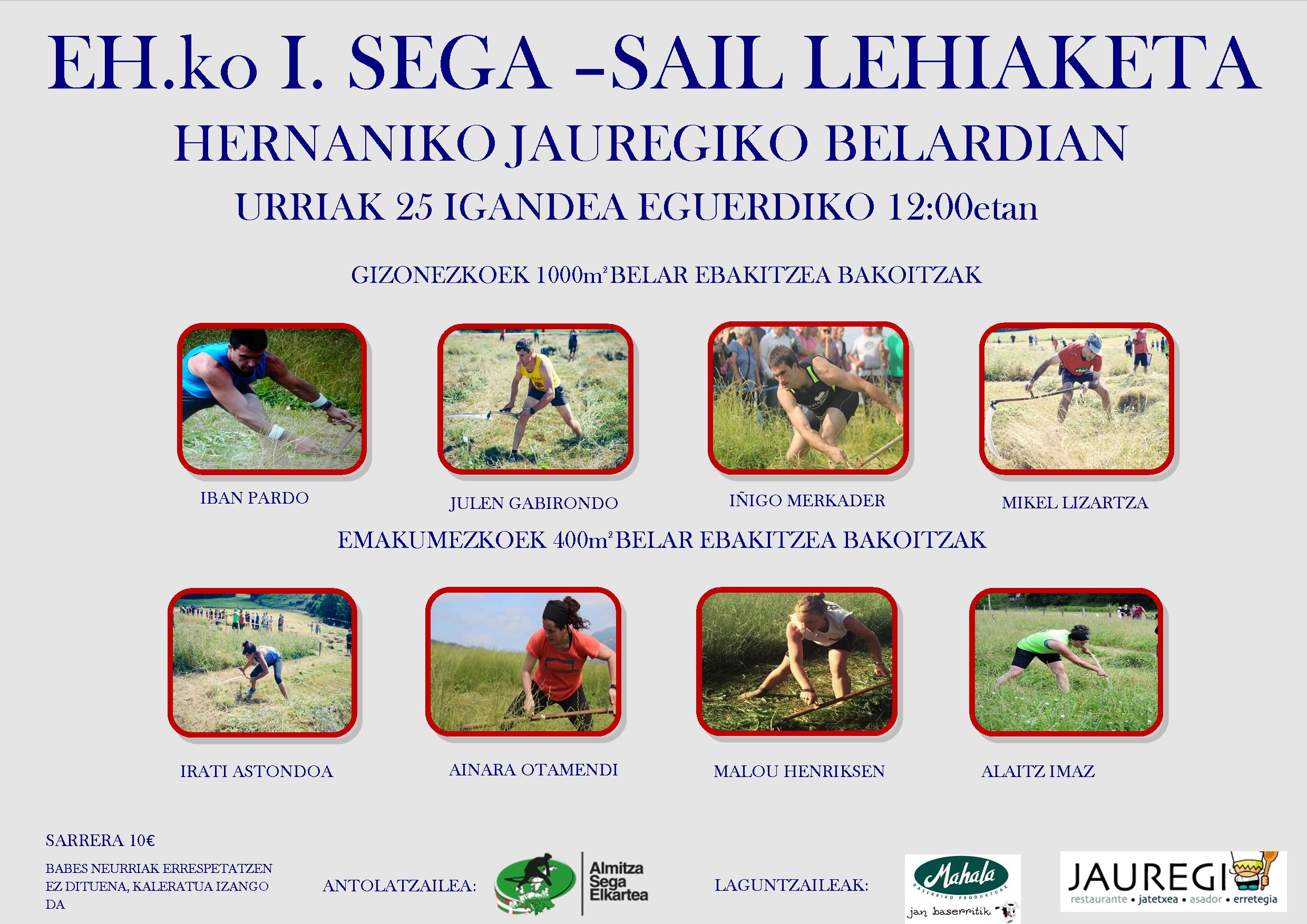 Aurten, ekitaldi eta lehiaketa ugari gelditu dira bertan behera bizi dugun egoera dela eta, horien artean, nazioarteko taldekako sega-txapelketa edota euskal federazioek antolatu ohi dituzten txapelketak. Almitza Elkarteak aurtengo urtean nazioarteko eran bi ekitaldi antolatu dituen arren, datorren iganderako, urriak 25, antolatu duena erronka berezia izango da: Euskal Herriko I. Sega-sail Lehiaketa. Berritzailea izango da, belarrik ez baita pisatuko besteak beste. Hernaniko Jauregi jatetxearen belardian jokatuko da eguerdiko 12:00etatik aurrera.