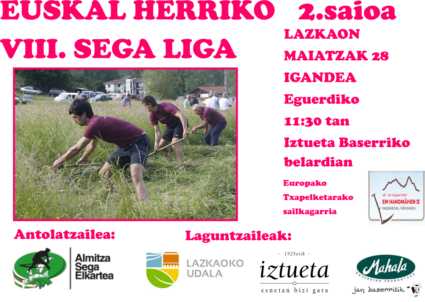 Datorren igandean, maiatzak 28, jokatuko da Euskal Herriko VIII. bakarkako sega-ligaxkako bigarren saioa Lazkaon.