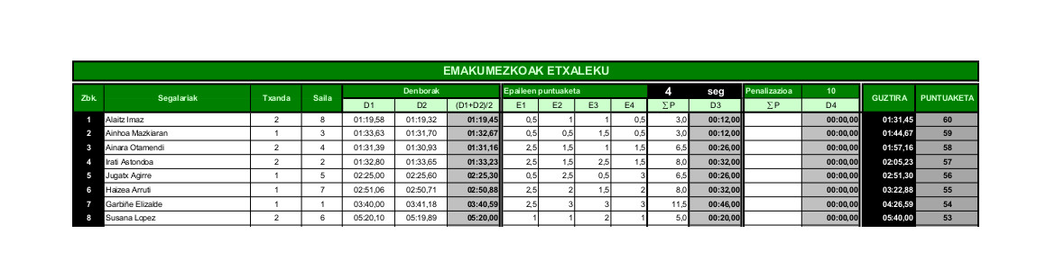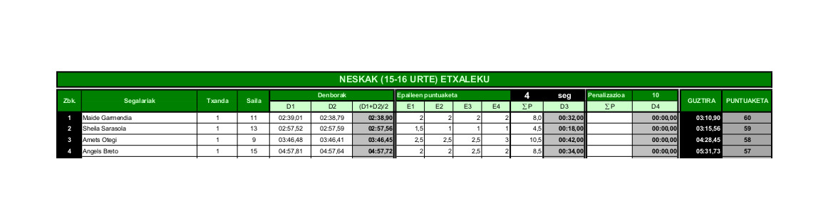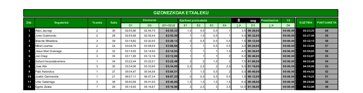 Jarraian sailkapen osoa xehetasun guztiekin: