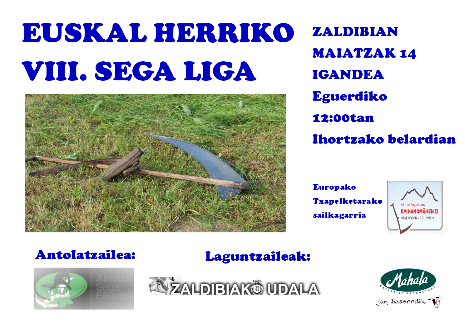 Maiatzaren 14an, Zaldibian jokatuko da Euskal Herriko VIII. Sega-ligaxkako lehen saioa. Ihortzako belardian izango da lehia eta eguerdiko 12.00etan emango zaio hasiera.